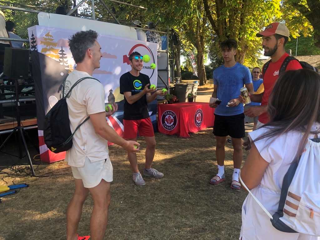 As if the tennis action wasn’t enough, on Saturday, Yakib Hrabarchuk, a professional juggler from Ukraine and also a coach at the Tennis Centre at Surrey, was on hand to teach a bit of juggling to anyone who was interested – it’s a great way to improve your hand-eye coordination – and it’s so much fun!