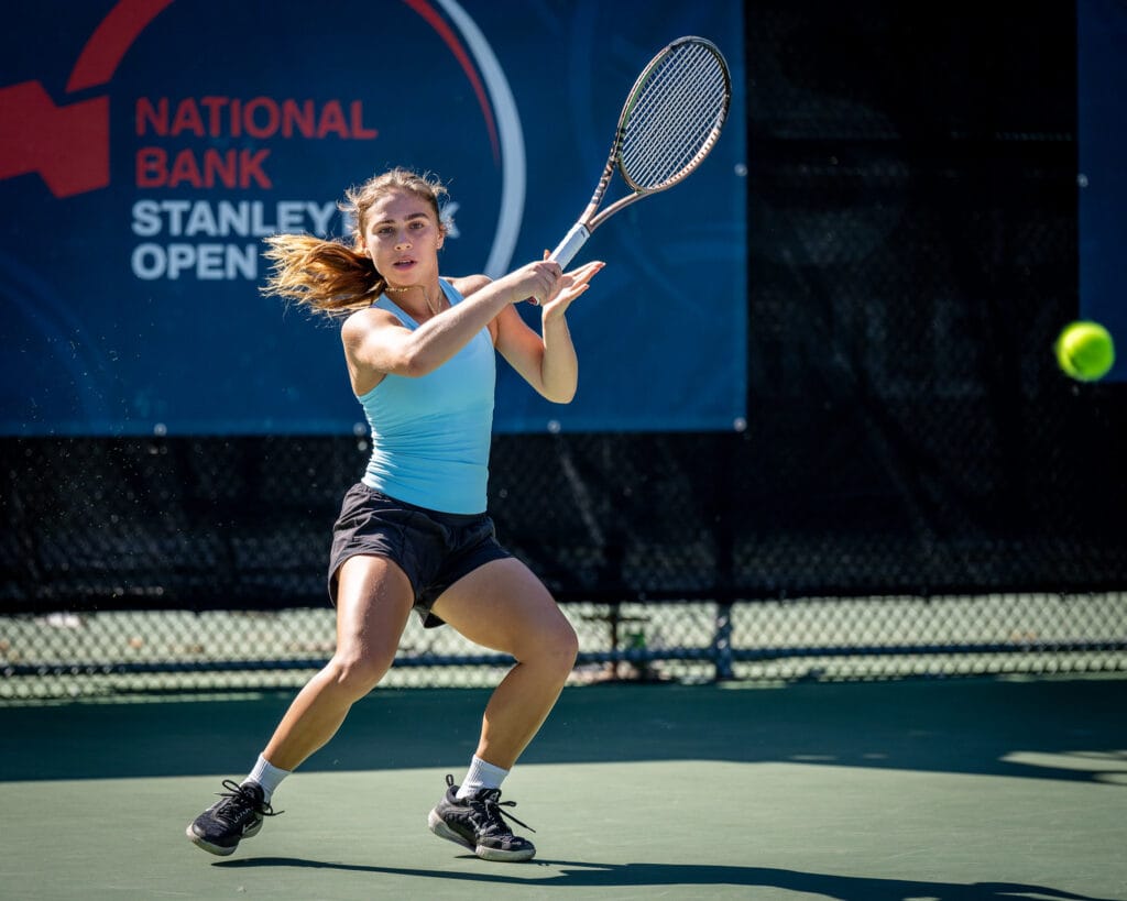 Day 17 was much anticipated with the men’s and women’s singles finals being broadcast live with Canadian Tennis and broadcasting legend Robert Bettauer on hand to call all the shots. NTRP was also wrapping up, with some hotly contested finals taking place on the upper courts. Play began at 10:00 am with the women’s final as past champion, Reece Carter (Wild Card) took on 16-year-old Havana Kadi. Carter had already played two finals, Open Mixed and Open Women’s Doubles and had been victorious in both.