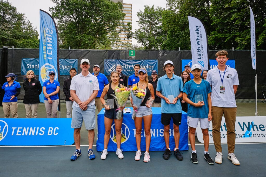 Leith Wheeler’s Mike Wallberg and Tennis BC’s Max Korkh were on hand for the award presentations to the ITF Girls’ and Boys’ Singles finalists, Alessia Cau, Isabella Asenov, Connor Church and Denny Bao.